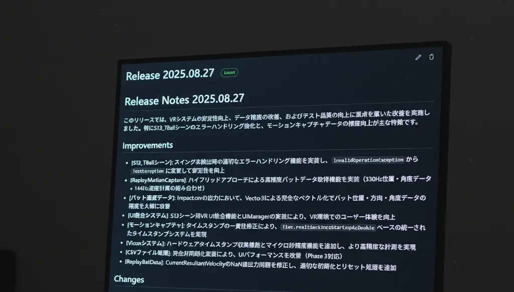 いままで公開していなかった、怪物ベースボールのリリースノートについて、公開できるものは公開していくようにします。